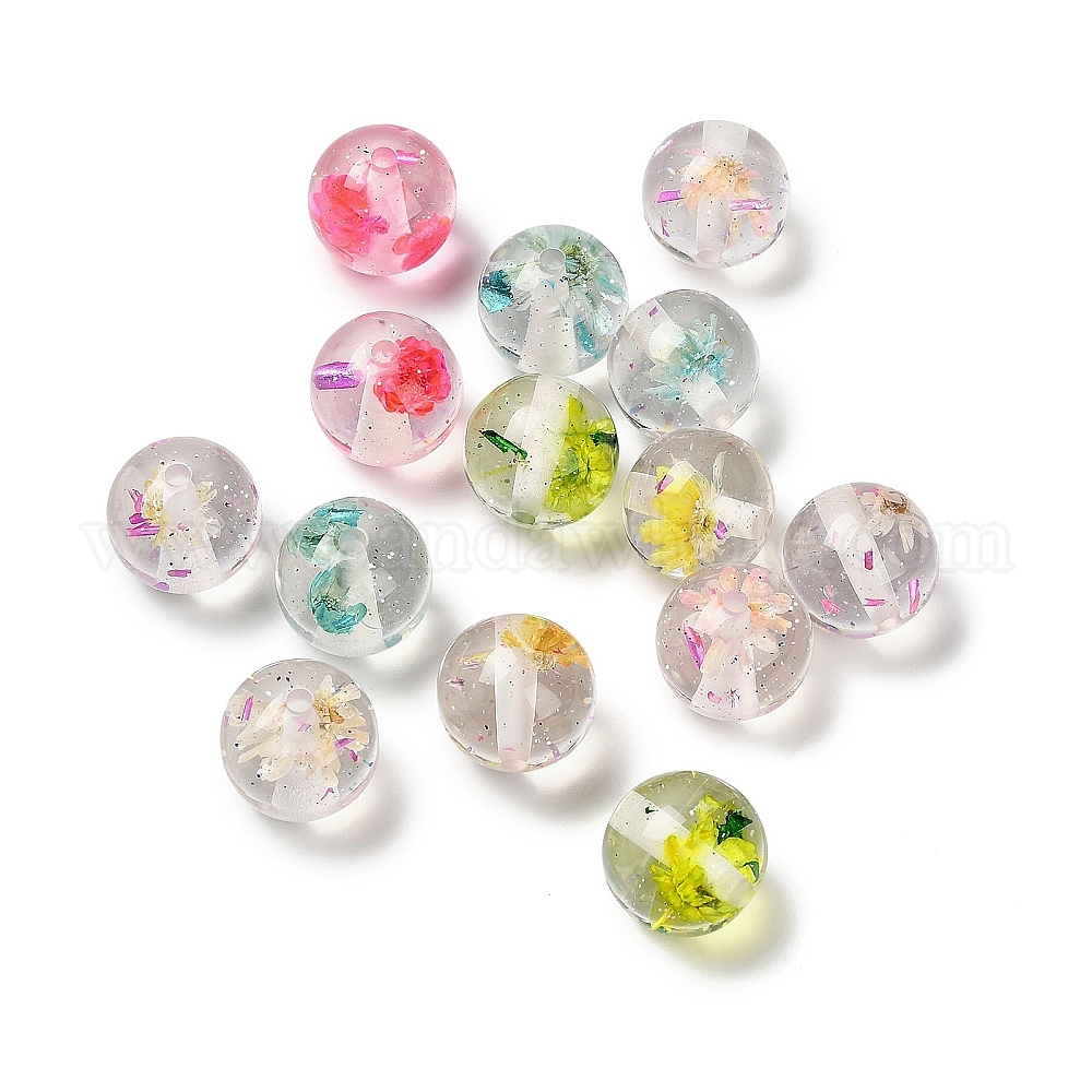 Прозрачный бисер cmолой, круглая с сухоцветом и блестящей пудрой