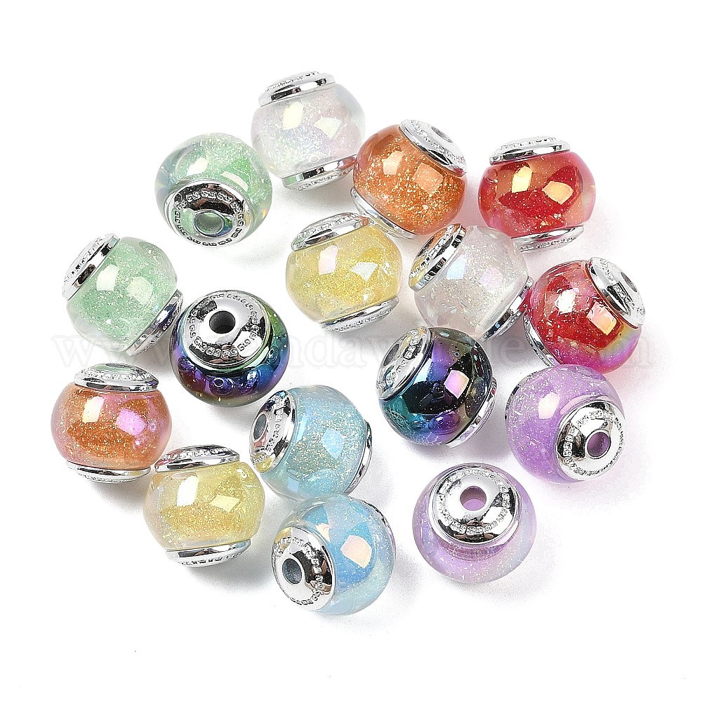 Прозрачный бисер cmолой, рондель, с блестящей пудрой и фурнитурой из пластика CCB