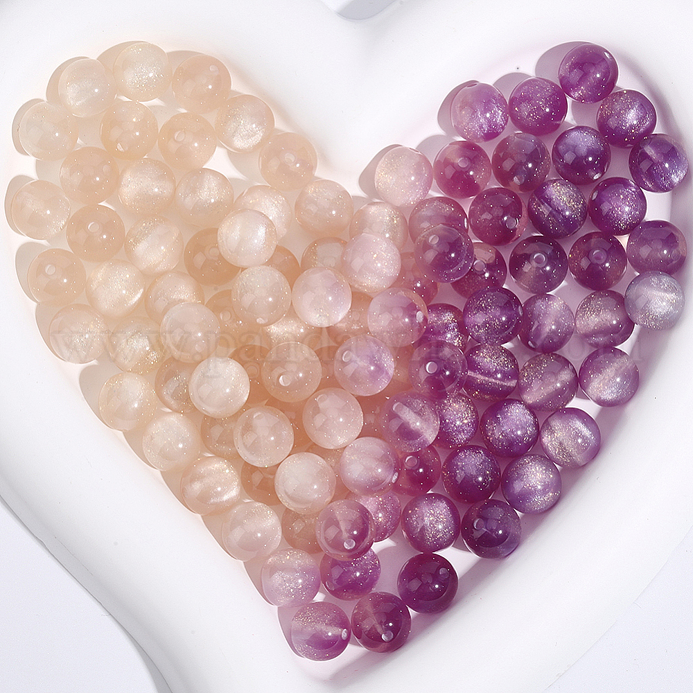• Сливовый 120шт. непрозрачные УФ-реактивные шарики, бусины, меняющие цвет, круглые, с блеском порошок, слива, 10 мм, отверстие : 1.6 мм