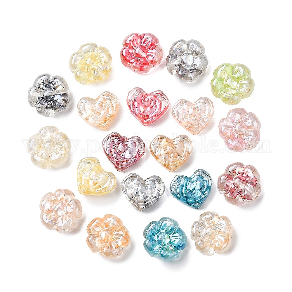• Цветок Прозрачная смола и натуральные ракушки, золотой фольгой, текстура, цветок, 20x21x9.5 мм, отверстие : 2 мм