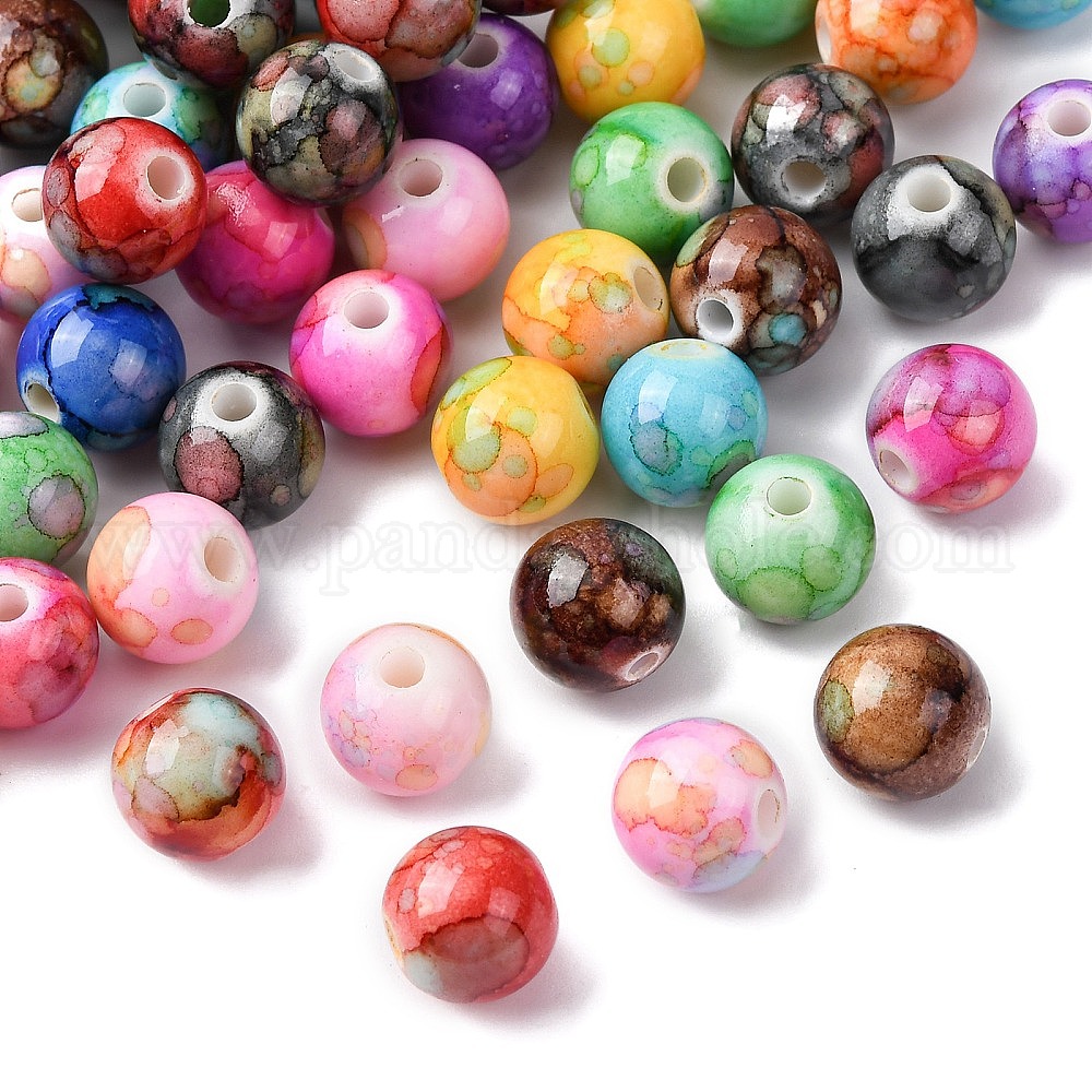 Печатные непрозрачные бусины из смолы, круглые