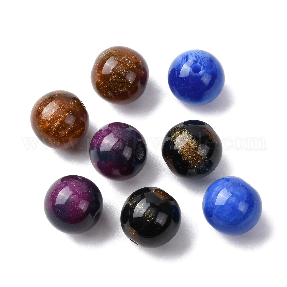 • Фиолетовый Непрозрачные шарики cmолы, круглые, с блеском порошок, фиолетовые, 10 мм, отверстие : 1.6~1.8 мм