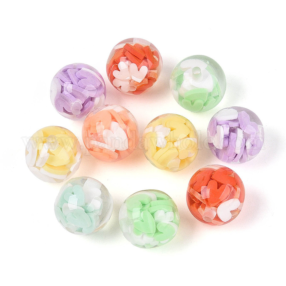 Прозрачный бисер cmолой, круглые, Полимерная глина внутри