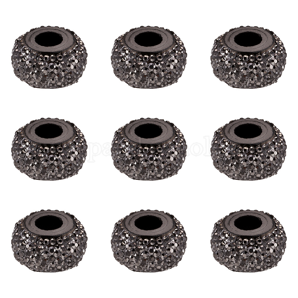 • Черный Бусины из cмолы, бусины с большим отверстием, рондель, чёрные, 14x8 мм, отверстие : 5 мм