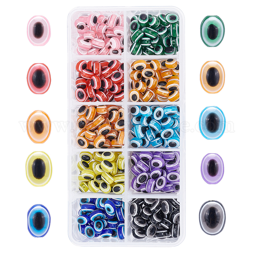 овальные бусины из смолы от сглаза: 8 мм в диаметре, толщиной 6 мм , отверстие : 2 мм, 10 цветов, 25 шт / цвет, 250шт;