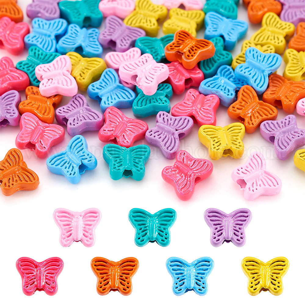 56 шт. 7 цвета, бусины из сплава, окрашенные распылением, бабочка