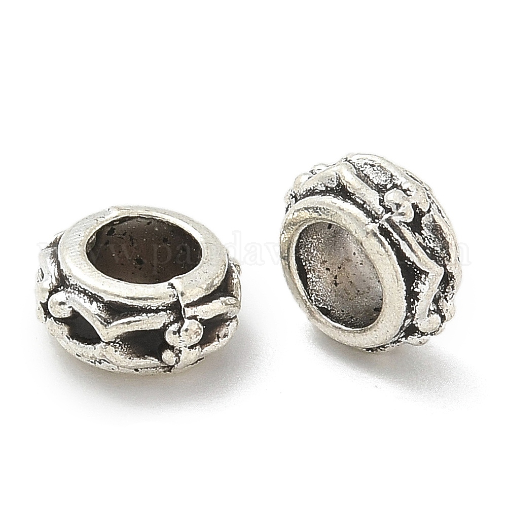 • Античное Серебро Сплавочные бусины, без кадмия и без свинца, рондель, античное серебро, 6.5x3.5 мм, отверстие : 3.5 мм, Около 2631 шт / 1000 г