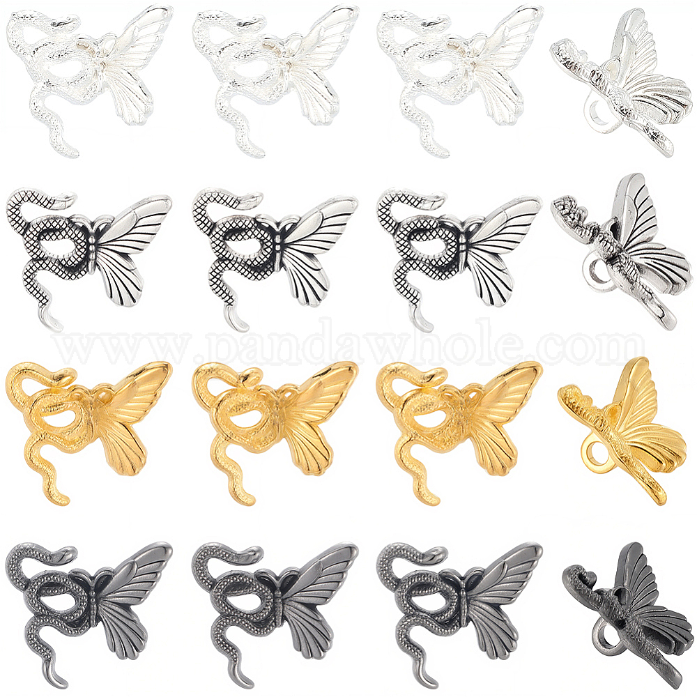 120шт 4 цвета бусины из сплава, бабочка и змея