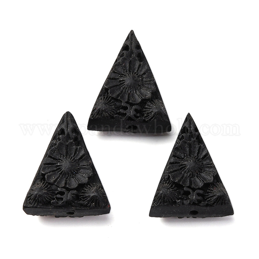 Киноварь бисера, резные лакированные, Треугольник с цветком