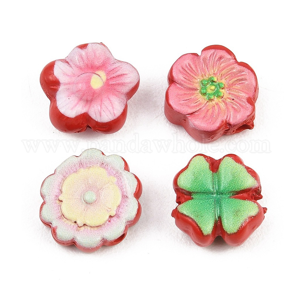 Бусины из киновари с принтом, цветок / клевер (03APY4)