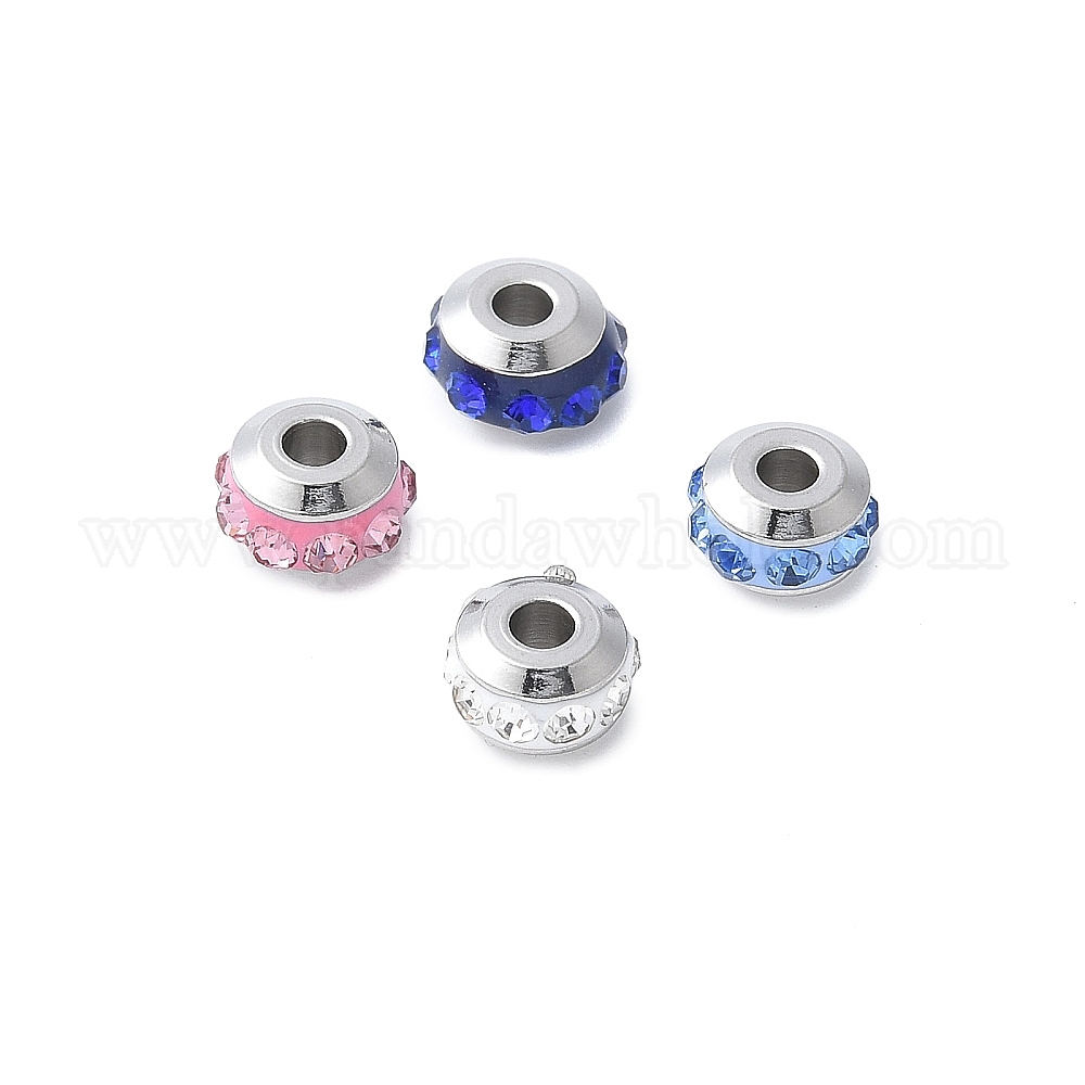 304 бусины из нержавеющей стали и полимерной глины со стразами, рондель, цвет нержавеющей стали
