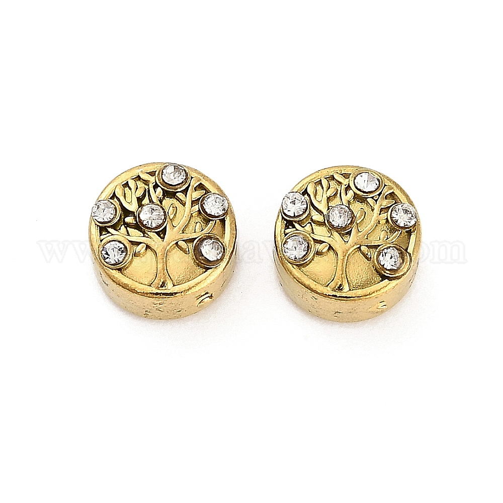 304 бусина из нержавеющей стали со стразами, ионное покрытие (ip), древо жизни