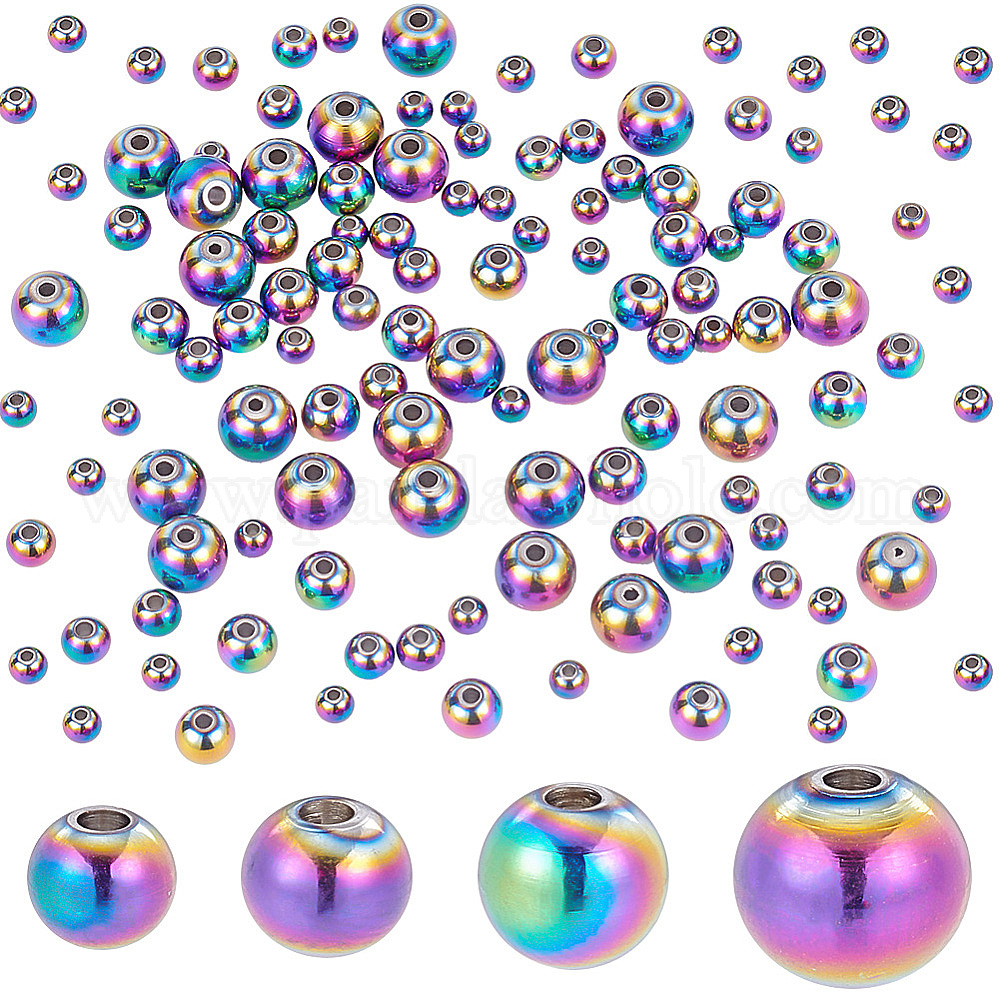 100 шт. 4 цвет радуги стиль покрытия стойки 304 бусины из нержавеющей стали, без кадмия, без никеля и без свинца, круглые (02DX6Q)