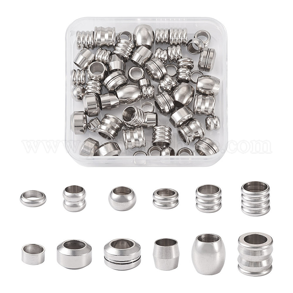 72шт 12 стиль 201 бусины из нержавеющей стали, бусины с большим отверстием, рондель, колонна и бочка
