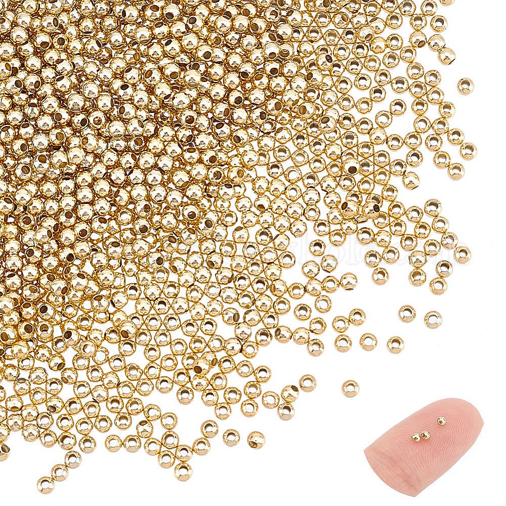 • Золотой 304 из нержавеющей стали бусы, полый круглый, золотые, 2x2 мм, отверстие : 0.8 мм, 1000 шт / коробка