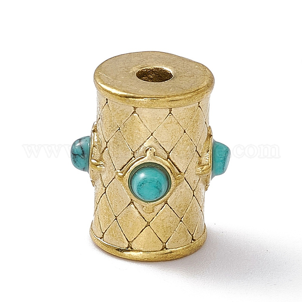 Синтетические бирюзовые бусины, с 304 фурнитурой из нержавеющей стали, колонка с ромбами рисунком