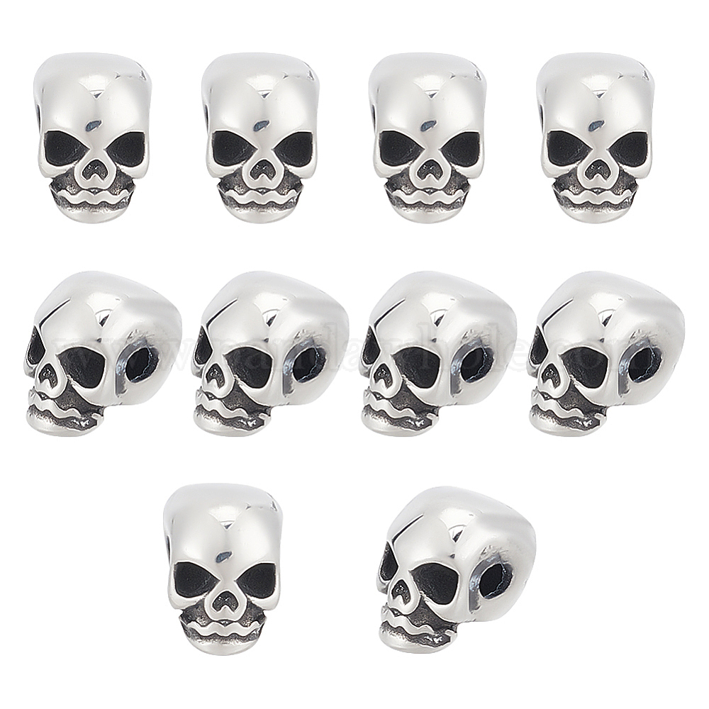 10 шт. 304 бусины из нержавеющей стали, череп
