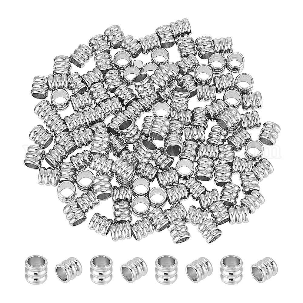 120 шт. 201 бусины из нержавеющей стали, Рифленые бусины, колонка