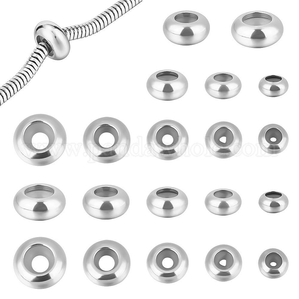• Нержавеющая Сталь Цвет 50шт 5 стиль 201 и 304 бусины из нержавеющей стали, с резиной внутри, ползунки, рондель, цвет нержавеющей стали, 6~10x3~4.5 мм, отверстие : 2~4 мм, резиновое отверстие: 1.2~3 мм, 10 шт / стиль