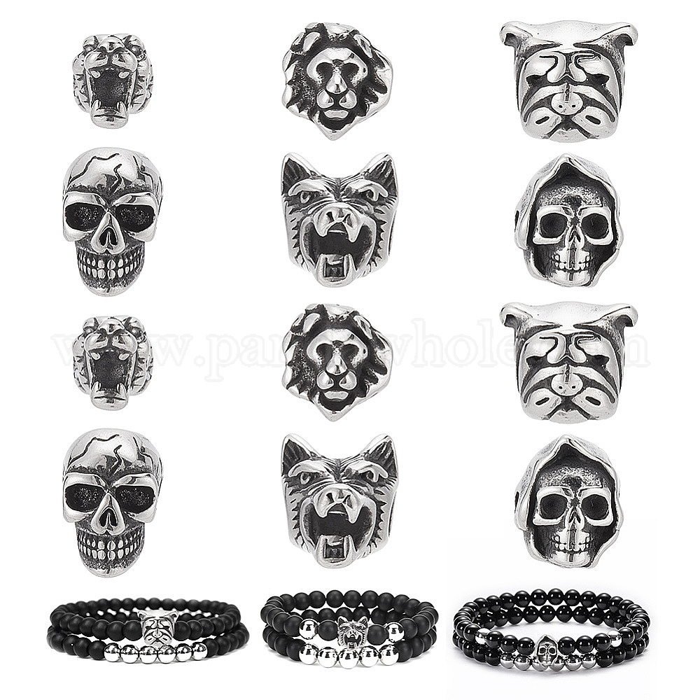 • Античное Серебро 12шт 6 стиль 304 бусины из нержавеющей стали, разнообразные, античное серебро, 10~14x8~13x9~11 мм, отверстие : 1.5~2 мм, 2 шт / стиль