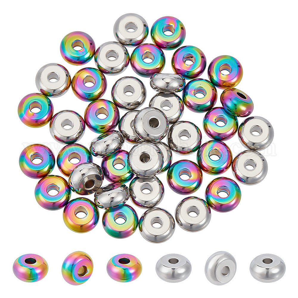 40шт. 2 стили 201 и 304 наборы бусин из нержавеющей стали, диск/рондель (02MZAK)