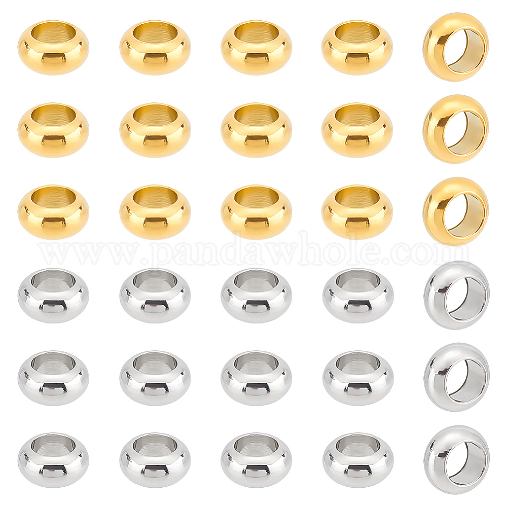 304 бусины из нержавеющей стали: около 10 мм в диаметре, толщиной 5 мм , отверстие : 6 мм, 2 цветов, 15 шт / цвет, 30шт;