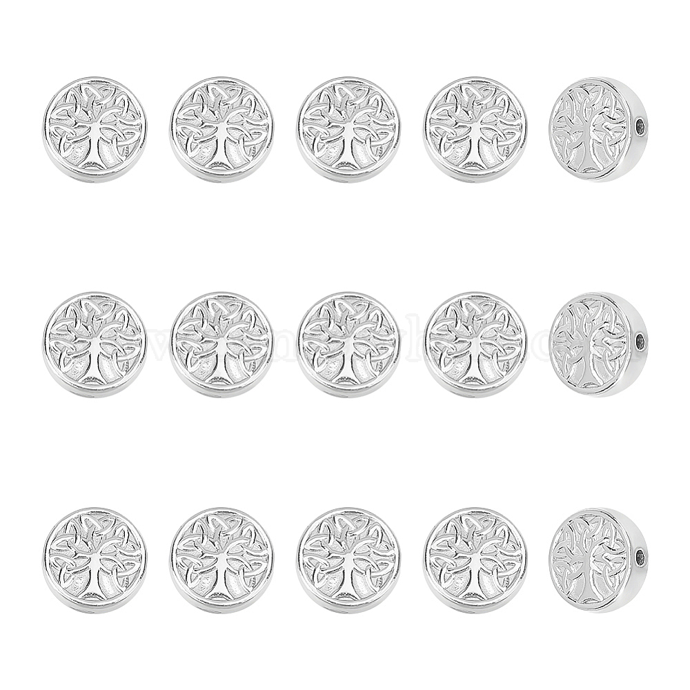 15 шт. 316 бусины из нержавеющей стали, Плоский круглый с узором дерева «тройной сучок»