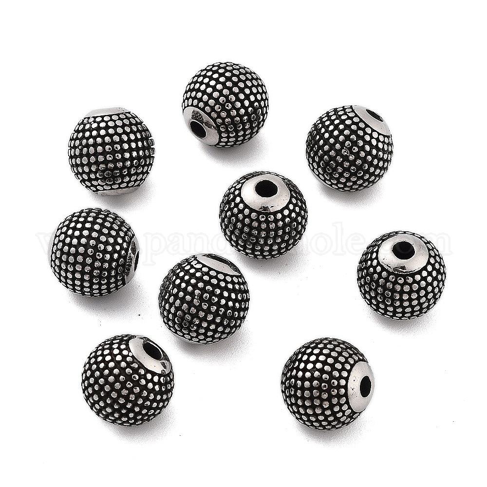 • Античное Серебро 316 бусины из хирургической нержавеющей стали, круглые, античное серебро, 10 мм, отверстие : 2 мм