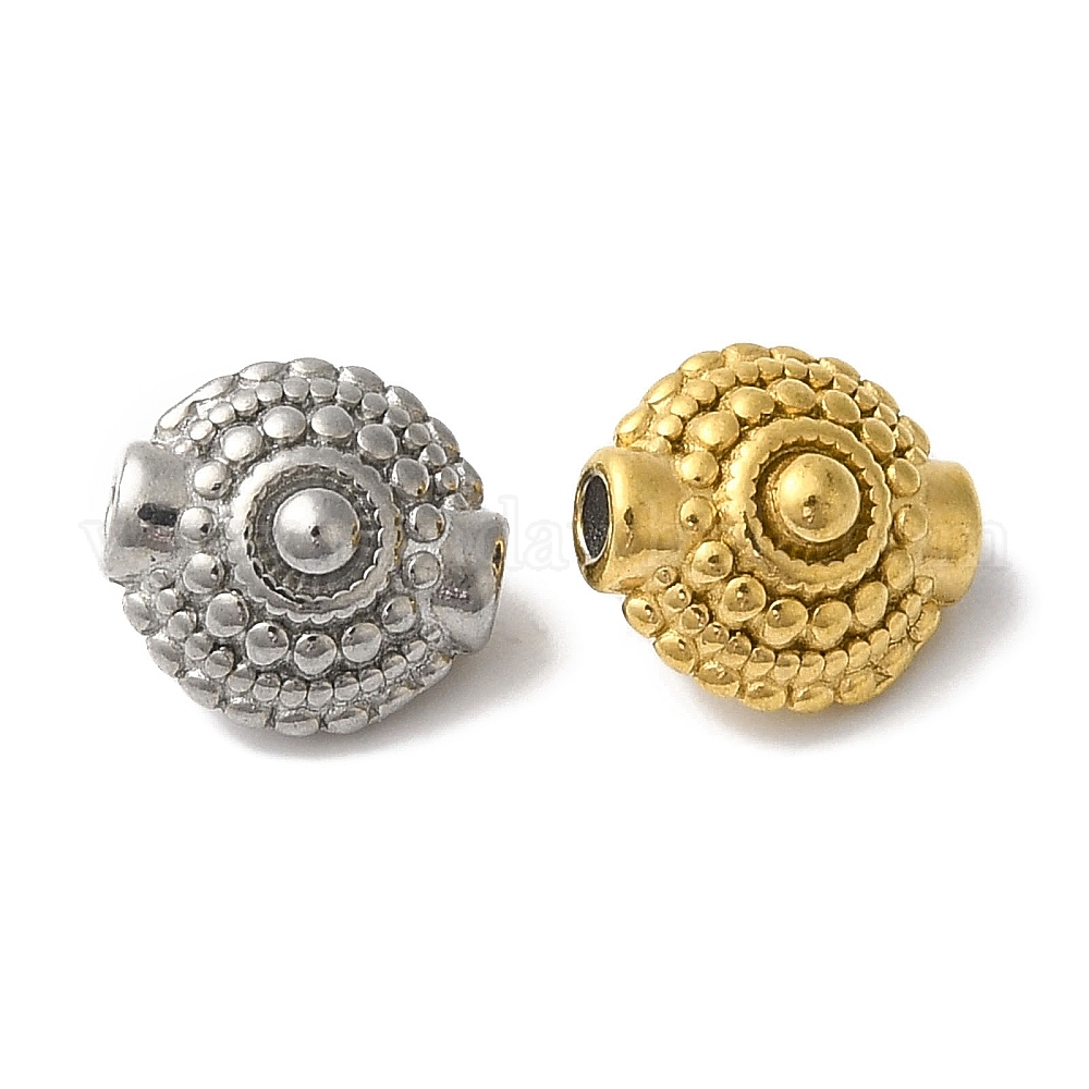 • Золотой 304 из нержавеющей стали бусы, плоско-круглые, золотые, 9x8x6 мм, отверстие : 1.6 мм