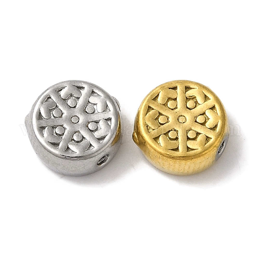304 из нержавеющей стали бусы, плоские круглые со снежинкой