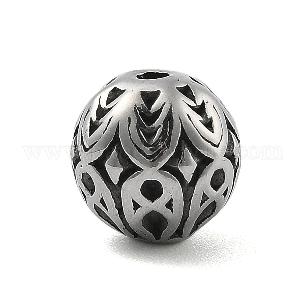 • Античное Серебро 316 бусины из хирургической нержавеющей стали, круглые, античное серебро, 10 мм, отверстие : 1.6 мм