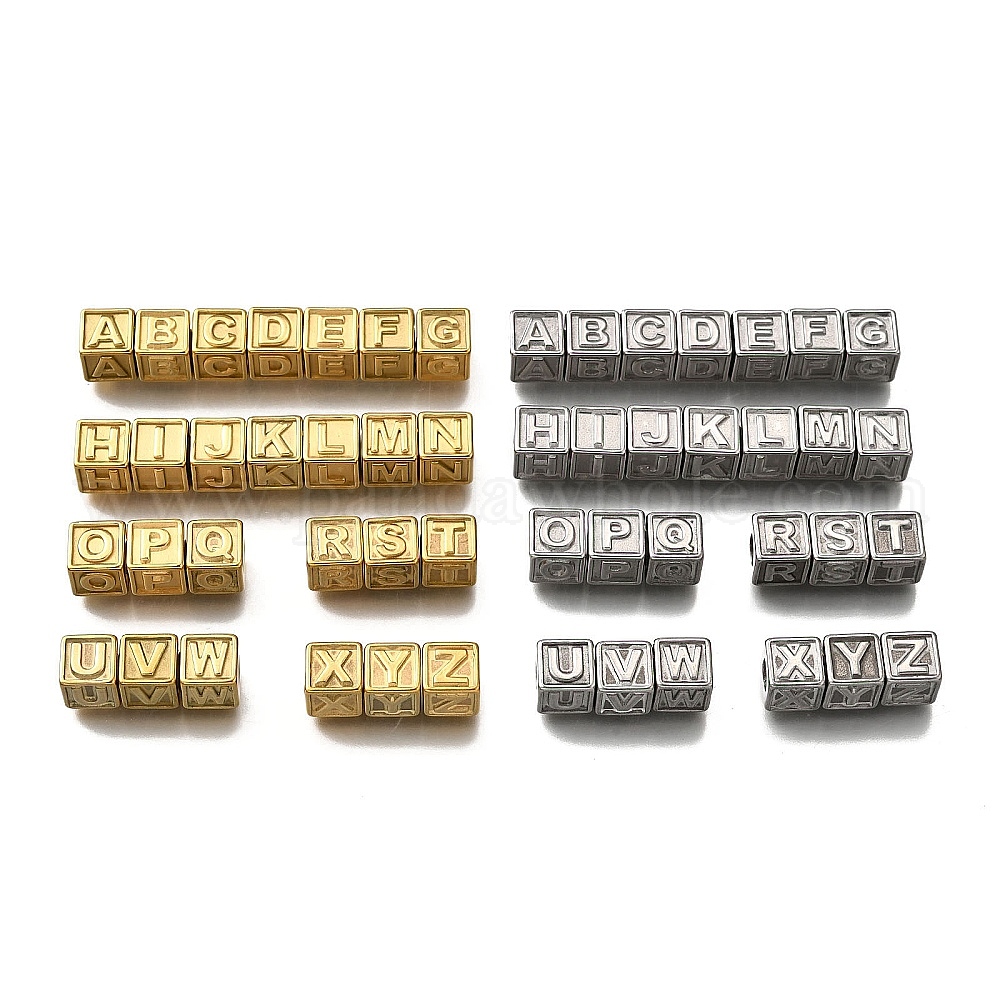 26 шт. 26 стили 304 кубические бусины из нержавеющей стали, Письмо ~ Z