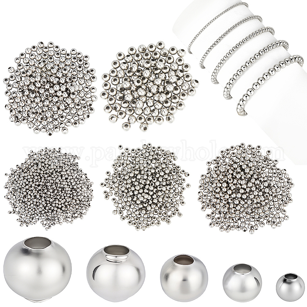 1500 шт. 5 стили 304 круглые бусины из нержавеющей стали с швом, для изготовления ювелирных изделий