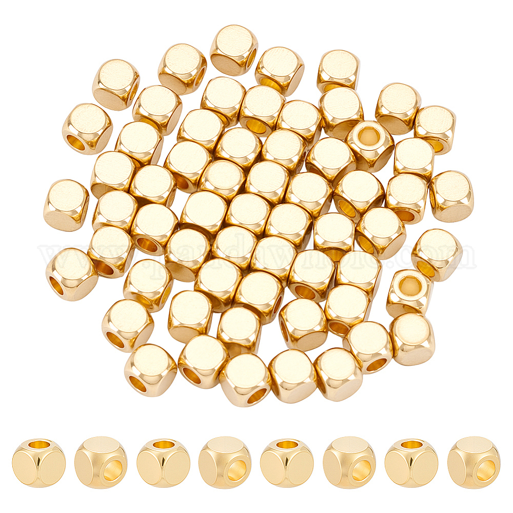 • Настоящее золото 18K 60 шт. 201 бусины из нержавеющей стали, кубические, реальный 18 k позолоченный, 4x4x4 мм, отверстие : 2 мм