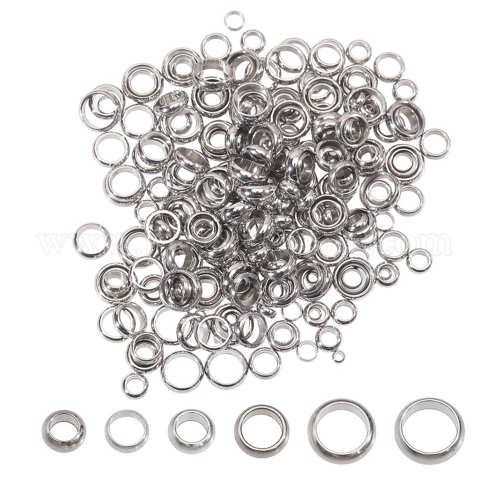 300 шт 6 стили 304 бусины из нержавеющей стали, рондель