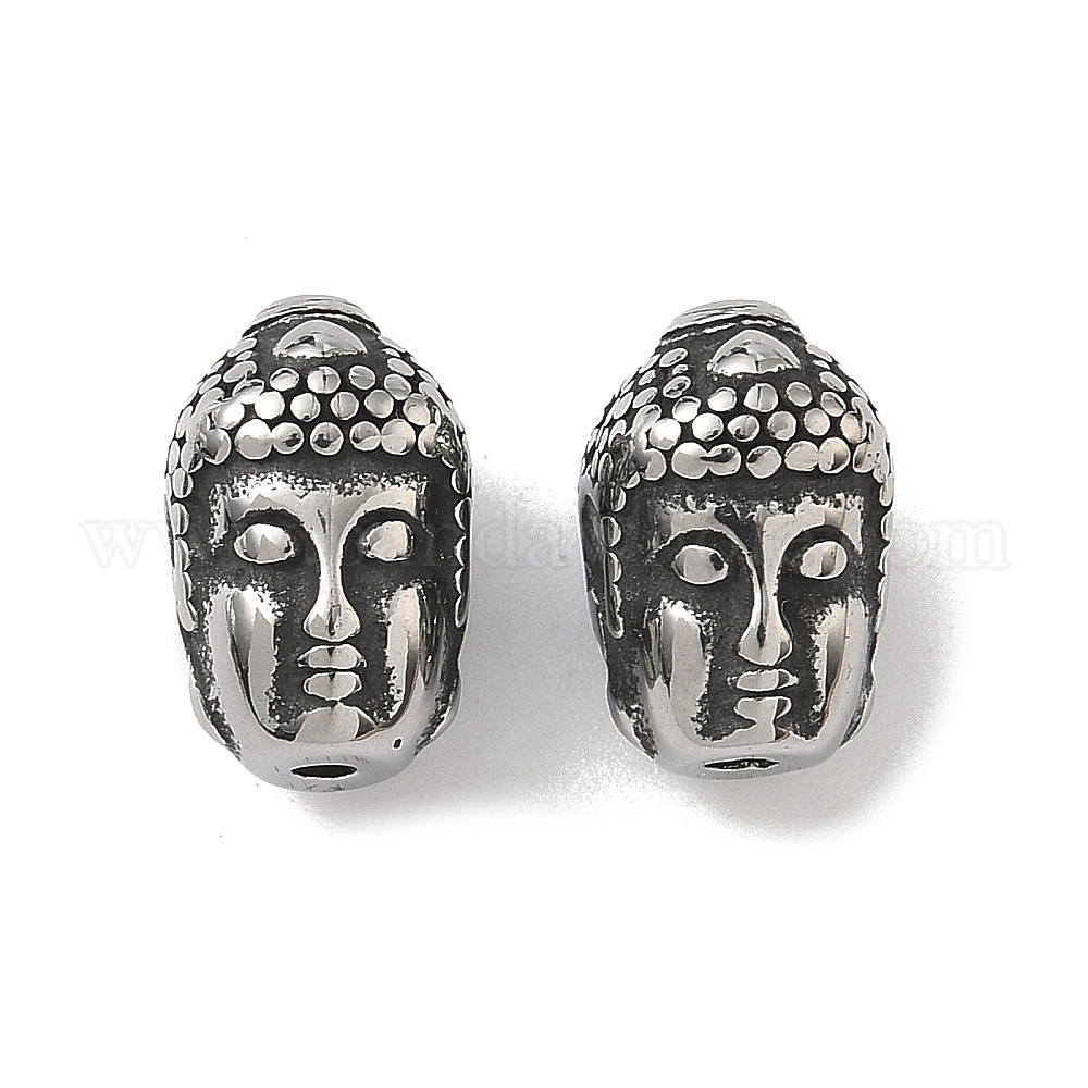 • Античное Серебро Ретро 316 хирургические бусины из нержавеющей стали, Голова Будды, ручная полировка, античное серебро, 13.5x8.5x9.5 мм, отверстие : 1.6 мм