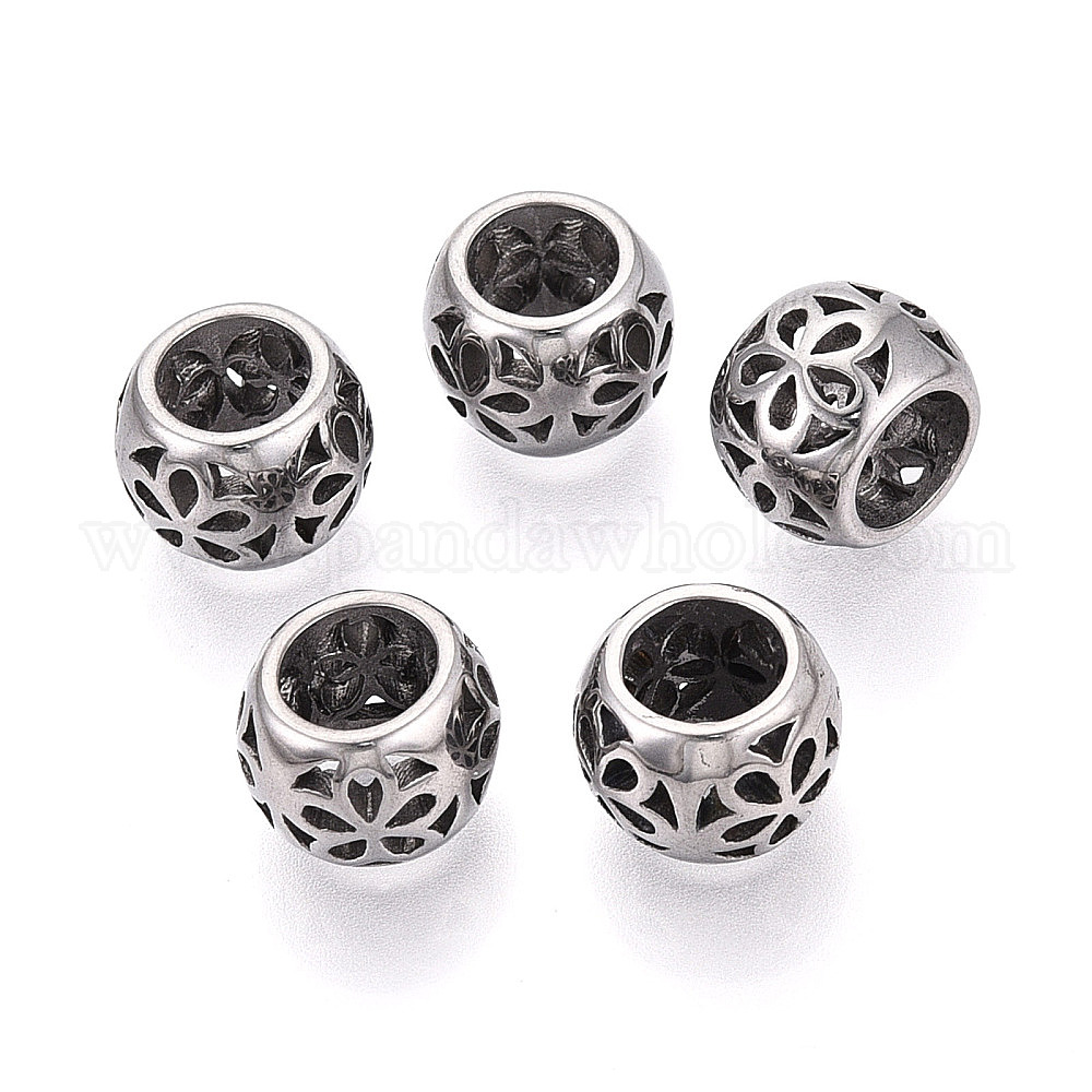 304 из нержавеющей стали крупные бусины отверстие, RONDELLE с цветком