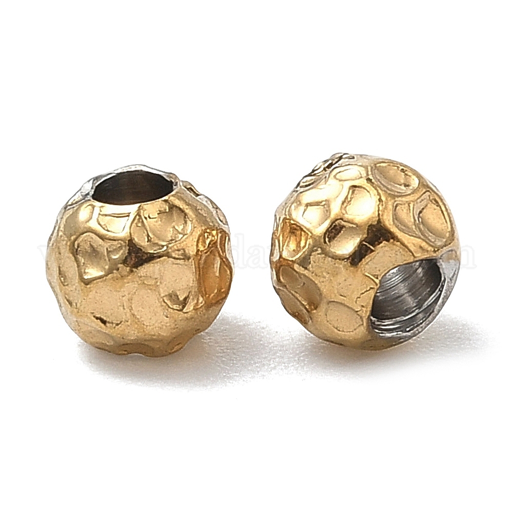 • Настоящее золото 18K 304 из нержавеющей стали бусы, круглые, ионное покрытие (ip), реальный 18 k позолоченный, 5x4.5 мм, отверстие : 1.8 мм