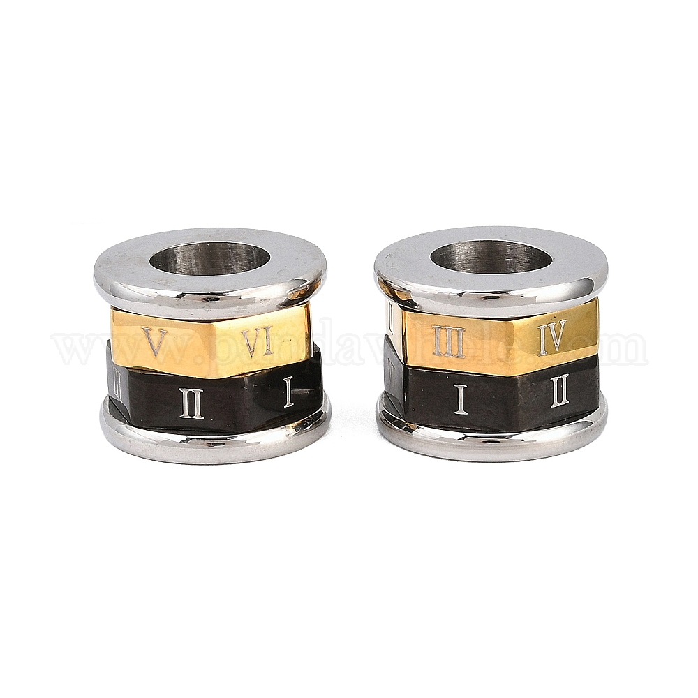 Вращающиеся 201 бусины из нержавеющей стали, бусины с большим отверстием, столбец с римскими цифрами (03AAN1)