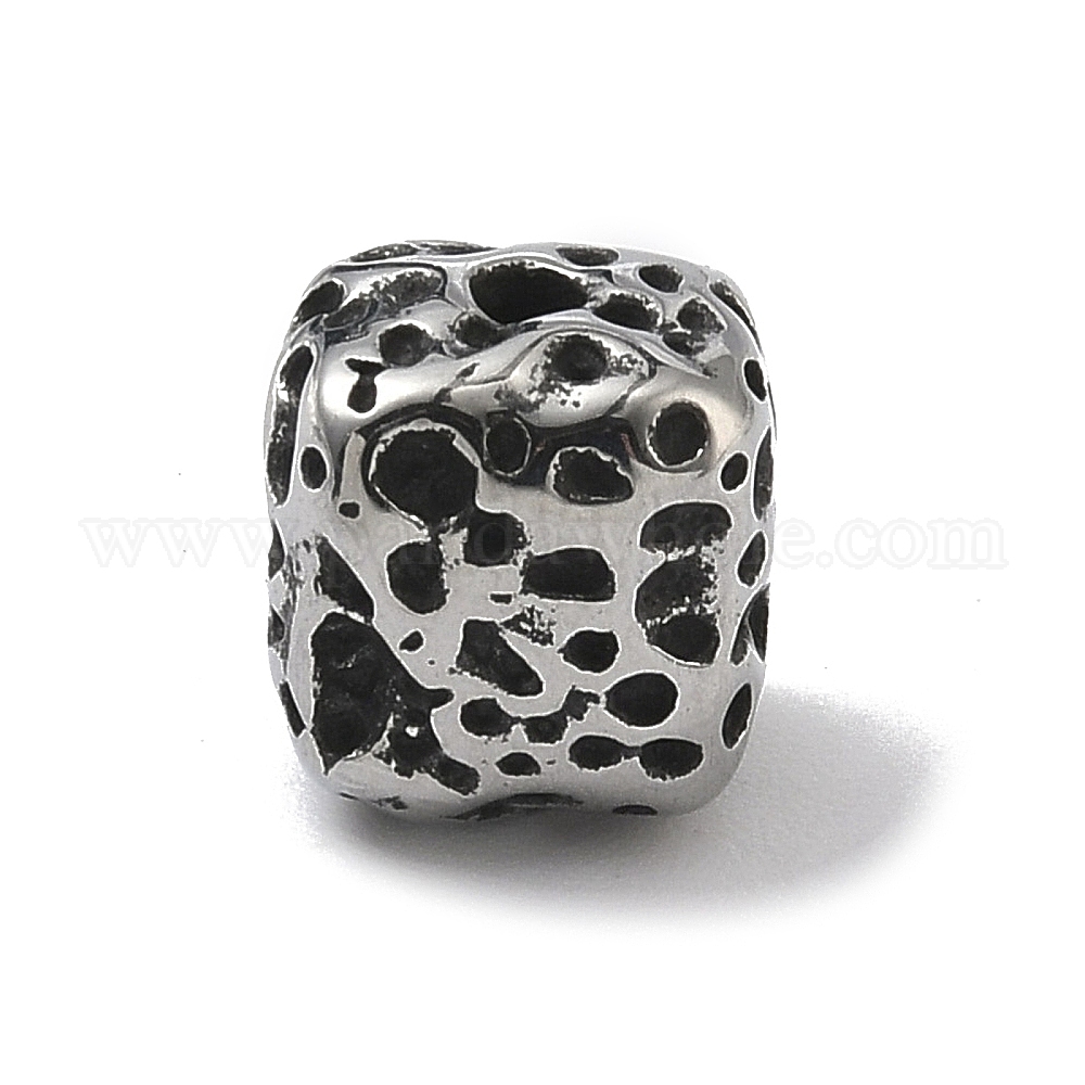 • Античное Серебро 304 из нержавеющей стали бусы, куб с лавовым узором, античное серебро, 10x9.5x9.5 мм, отверстие : 1.8 мм