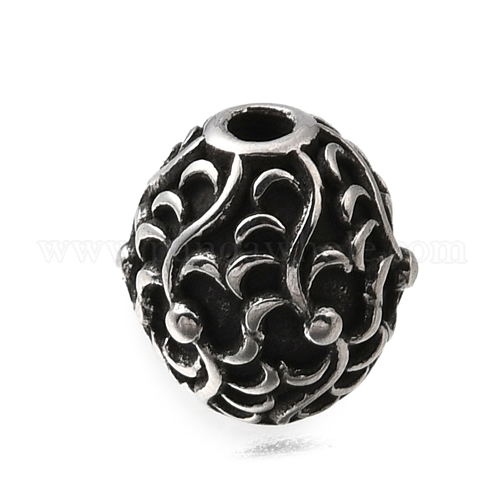 • Античное Серебро 304 из нержавеющей стали бусы, овальный с вихревым узором, античное серебро, 10.5x9.5 мм, отверстие : 1.8 мм