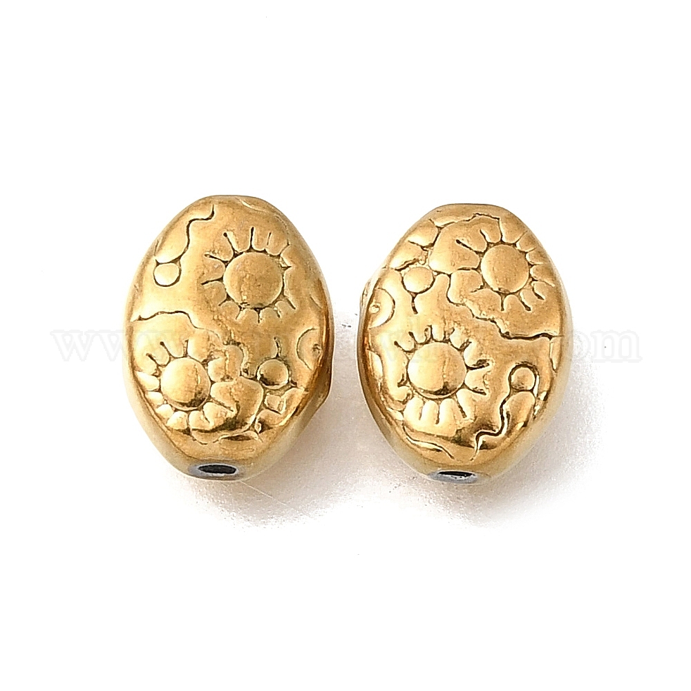 304 из нержавеющей стали бусы, ионное покрытие (ip), овальные с цветком