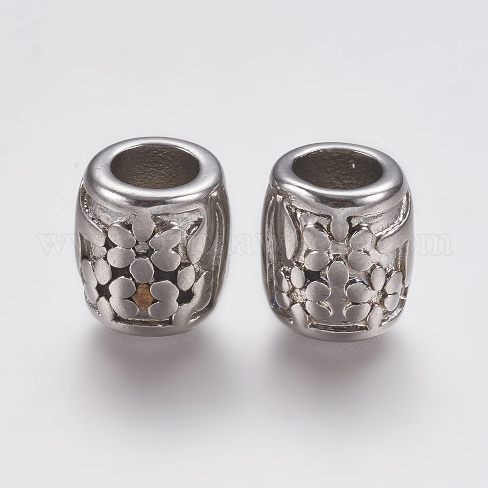 • Нержавеющая Сталь Цвет Устойчивы к потускнению 201 бусины из нержавеющей стали, бусины с большим отверстием, баррель с цветком, цвет нержавеющей стали, 11.5x10 мм, отверстие : 6 мм