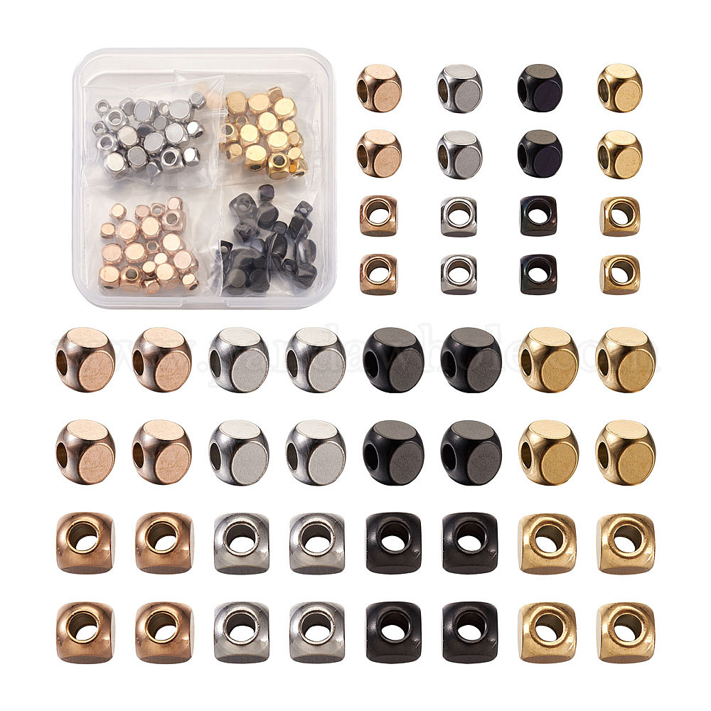 кубическое вакуумное покрытие pvd 304 шарики из нержавеющей стали: около 6 мм шириной, 6 мм длиной, толщиной 6 мм , отверстие : 3 мм, 4 цветов, 10 шт / цвет, 40 шт;