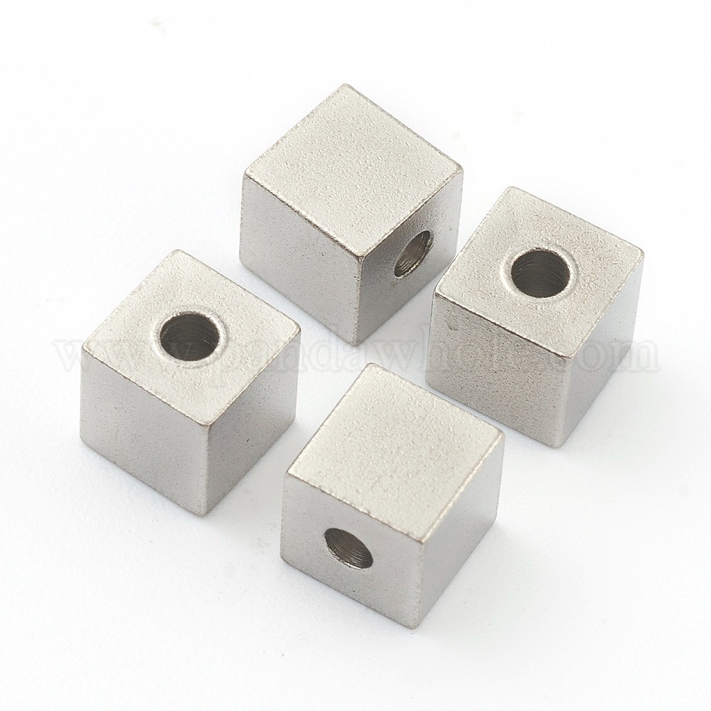 • Нержавеющая Сталь Цвет Не тускнеет 304 бусины из нержавеющей стали, кубические, цвет нержавеющей стали, 5x5x2 мм, отверстие : 2 мм