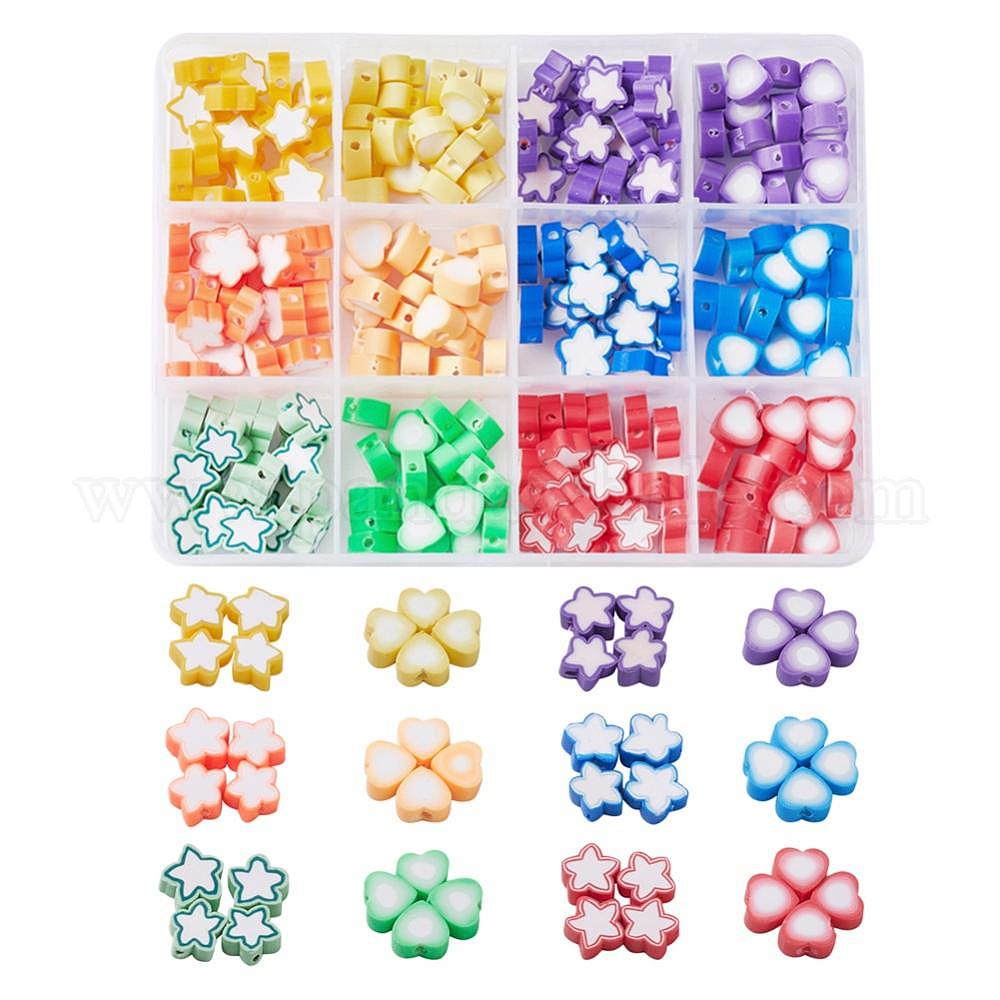 240 шт 12 стиль бусины из полимерной глины ручной работы, для поделок ювелирных изделий, Сердце и звезда