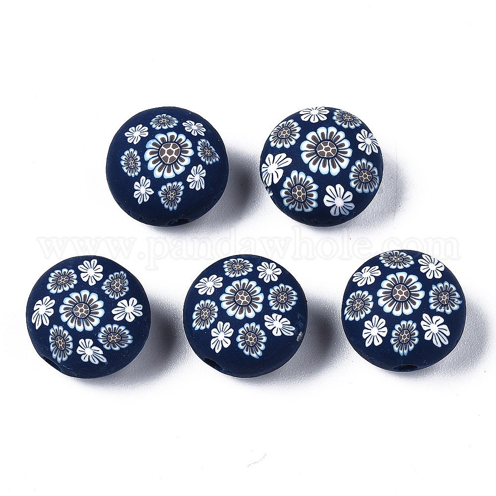 Бусины из полимерной глины , для поделок ювелирных изделий, плоские круглые с цветком
