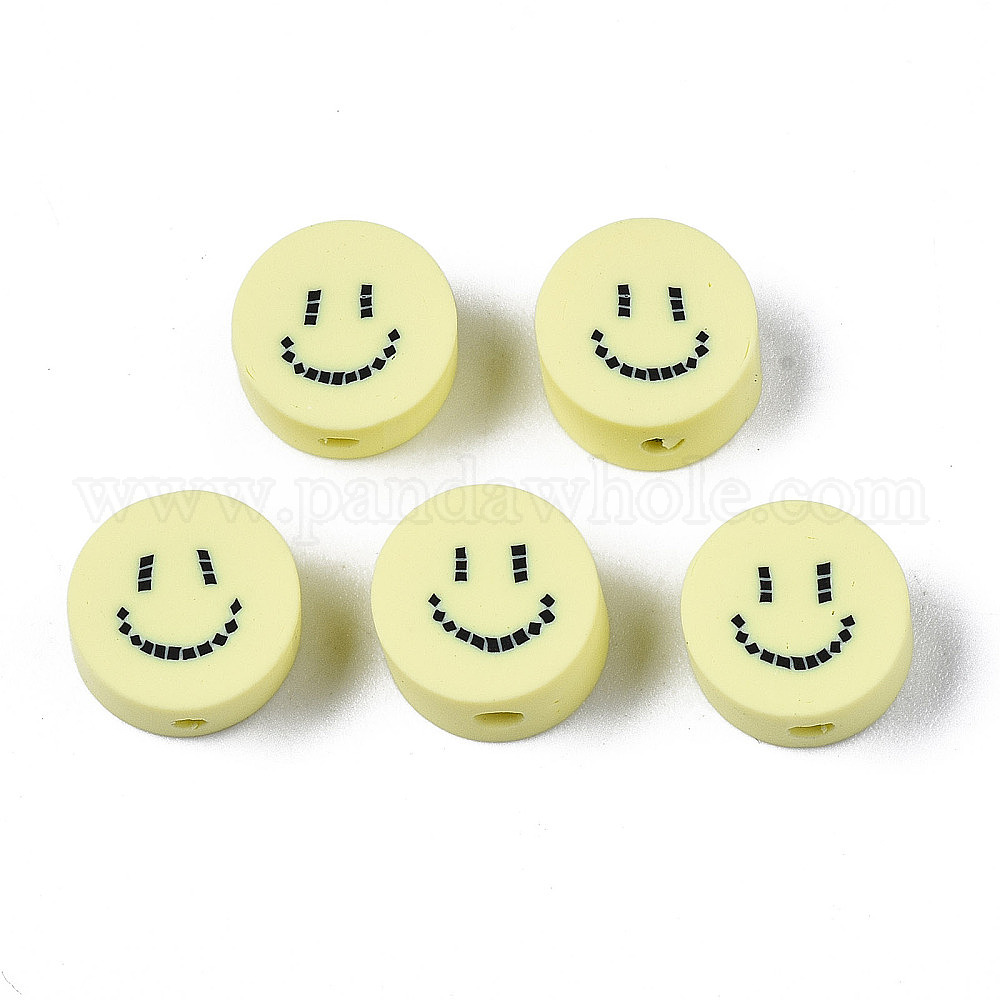 Бусины из полимерной глины , для поделок ювелирных изделий, плоские круглые с улыбающееся лицо