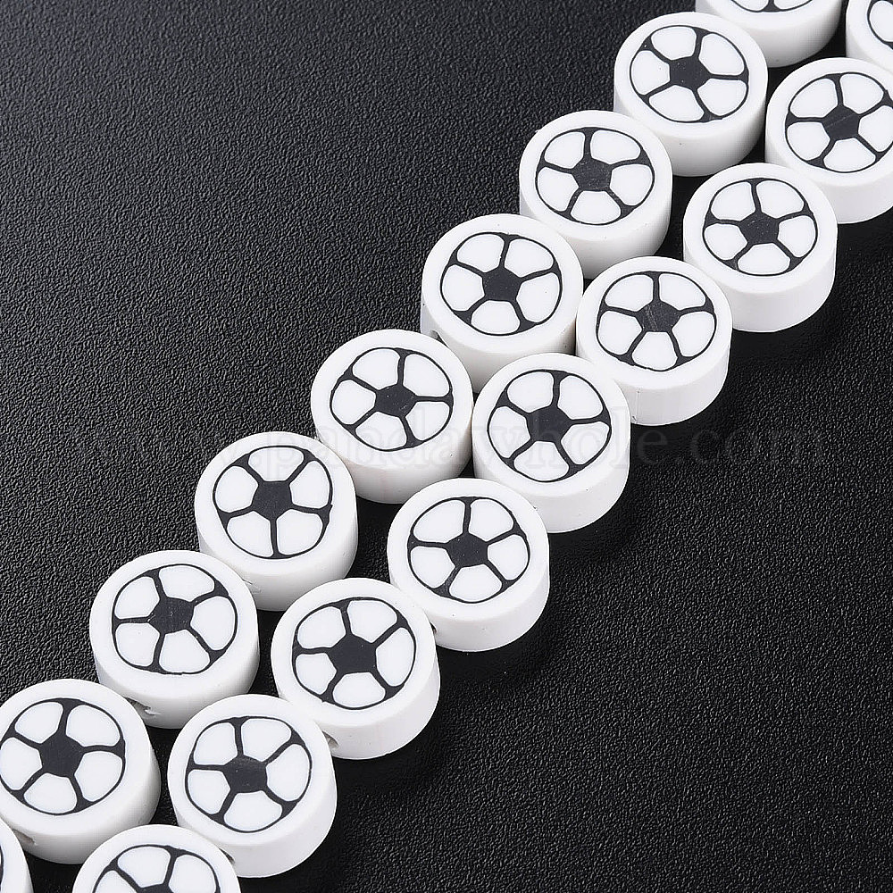 • Белый Ручной полимерные нити глины шарик, плоские круглые с футболом, белые, 8~9x4~5 мм, отверстие : 1.2~1.4 мм, около 40~41 шт / нитка, 13.62 дюйм ~ 13.86 дюйм (34.6 см ~ 35.2 см)