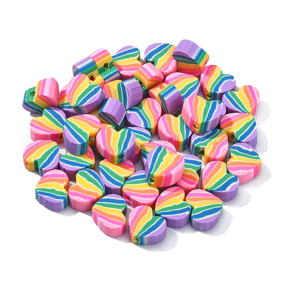 200 бусины из полимерной глины ручной работы., сердце с узорами